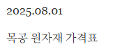 목공 원자재 가격표